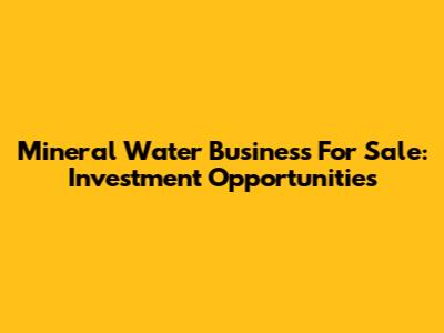 Mineral Water Business For Sale: Investment Opportunities