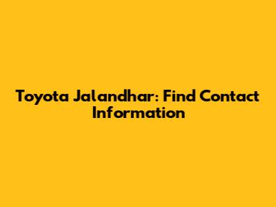 Toyota Jalandhar: Find Contact Information