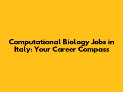 Computational Biology Jobs In Italy: Your Career Compass