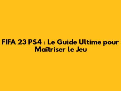 FIFA 23 PS4 : Le Guide Ultime Pour Maîtriser Le Jeu