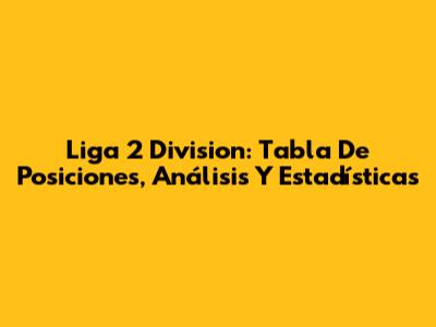 Liga 2 Division: Tabla De Posiciones, Análisis Y Estadísticas