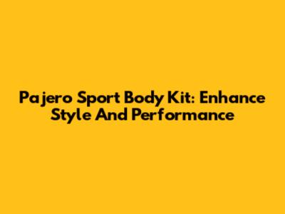Pajero Sport Body Kit: Enhance Style And Performance