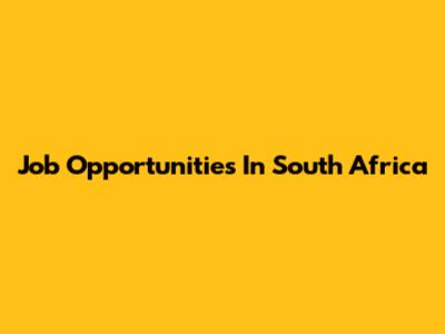 Job Opportunities In South Africa